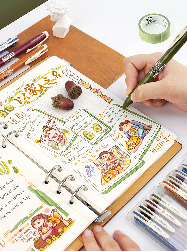 点石復古色中性ペン二色0.5速乾墨手帳筆記文房具執務試験学生用筆先大容量炭素プレゼントペン単本DS-608黒芯オリーブメント【写真価格ブランド見積】