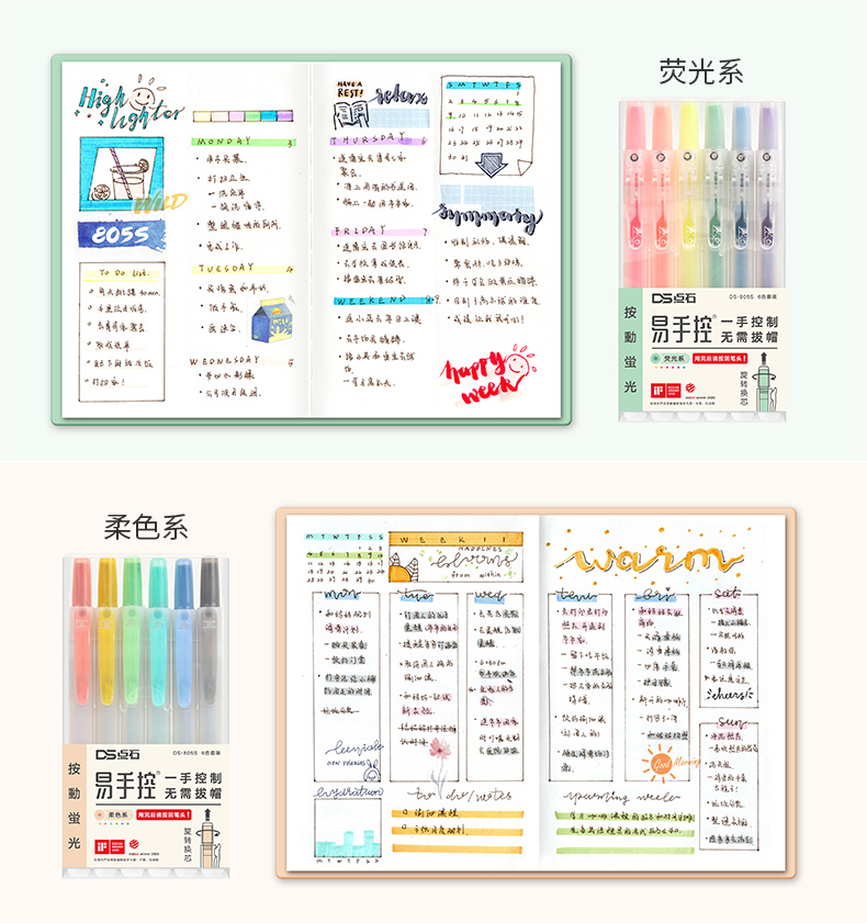 点石は蛍光ペンを押してペンの芯の単語を変えて重点マークをつけます。ペンの色を描きます。学生用ins風小紅書記号ペンDS-8501 805 s深青は芯の1本に替えます。
