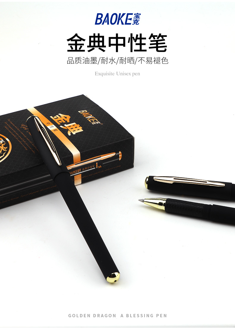 宝克(BAOKE)PC 2318金典中性ペン0.5 mmオフィス署名ペン黒水墨12本/箱