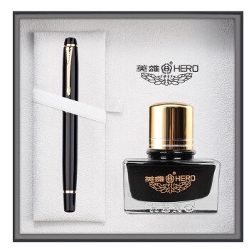 英雄(HERO)万年筆1501黒雅悦明尖イリジウム金ペンサイン入りファッションオフィス学生インクセットFチップ