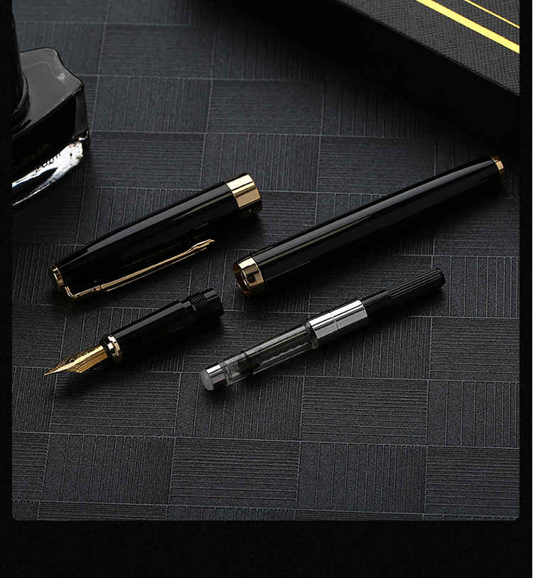ペガソ(pimio)万年筆ミニインクギフトセットダブルペン先セット0.5 mm+0.7 mm男女オフィス書道習字美筆T 717亮黒金夹