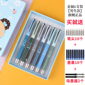 ヒーロー(HERO)万年筆学生用文具アニメ莫蘭迪色系金属棒イリジウム金万年筆(インクパック付*10+インク吸入器*2+ペン先*10)男性用ダークチップ6本入り