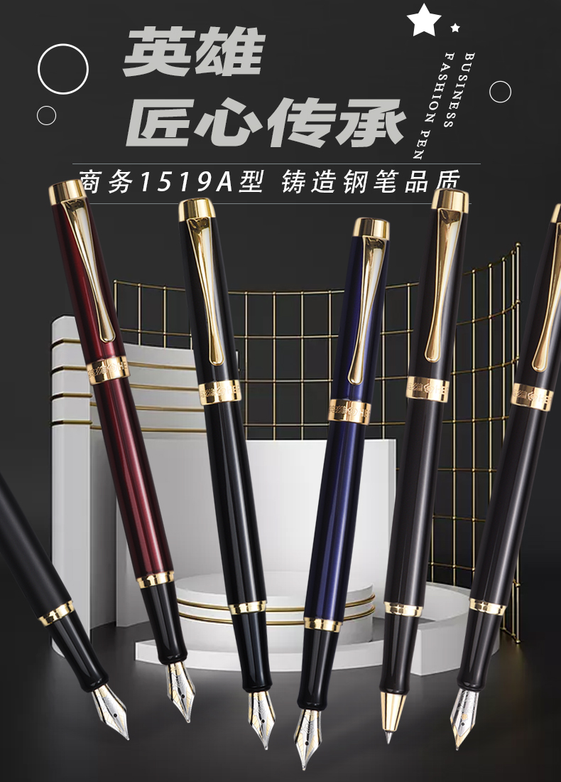 【英雄1519 A】英雄(HERO)万年筆1519 A研砂黒男女ビゼーの個性的なオフスの署名付きペン礼装箱3点セット